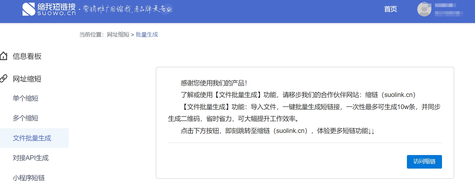 除了同时缩短多个长链接,如果你想一次性缩短成百上千条长链接,还可以使用【文件批量生成】与【对接api生成】功能,需要到缩我的升级版网站——缩链(https://suolink.cn/)去使用~