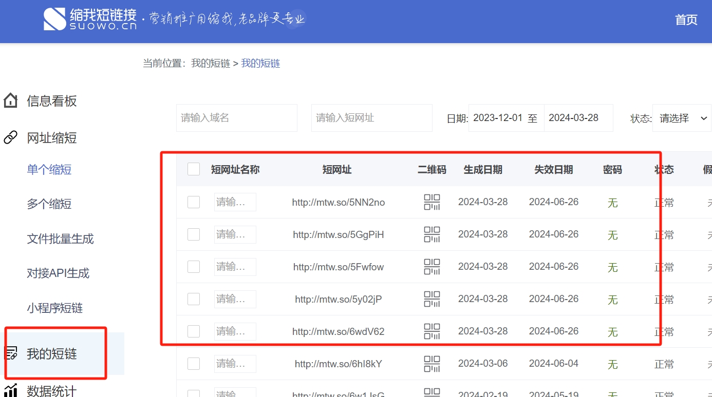 生成的短链接在【我的短链】中可以查看、管理。