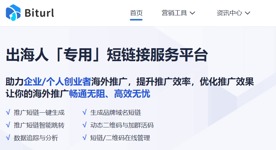 无论海外推广还是国内推广,短链接都是一个使用量非常大的工具,专业好用的短链平台,是海外推广的重要保障,biturl正是这样一个平台,功能强大,操作简单,稳定好用,值得信赖。