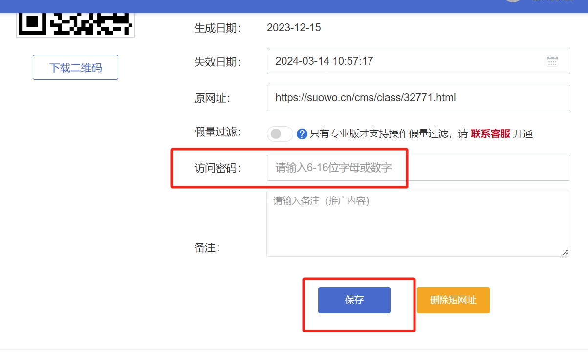 输入6~16位字母或数字,点击【保存】,这样一个带密码的链接就制作好了!