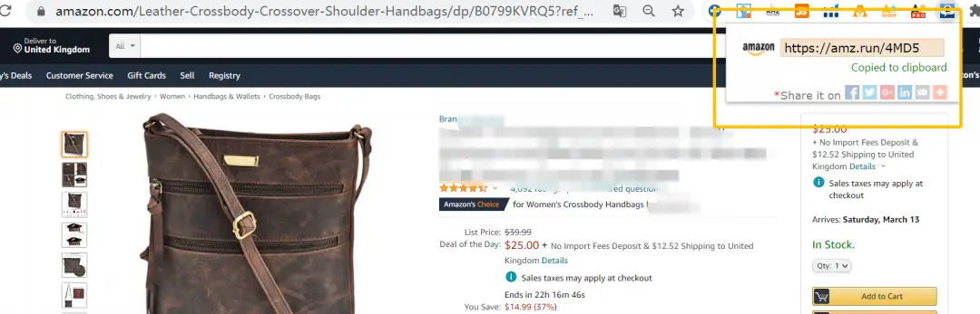 将该扩展程序转换生成的短链接插入到推广引流文案中,相较于原始长链接会更加简洁清爽,也给人专业性更强的感觉;同时生成自带的amz标志一眼就能分辨出这是跳转至亚马逊网站的链接,一定程度上能提高链接点击率,让目标群体点击直接进入listing进行购买。
