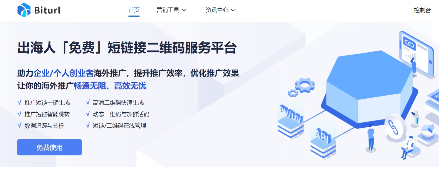 biturl支持免费使用,可以说是中国企业以及个人创业者出海必备的短链接工具之一,点击下方图片即可直达biturl,马上体验↓