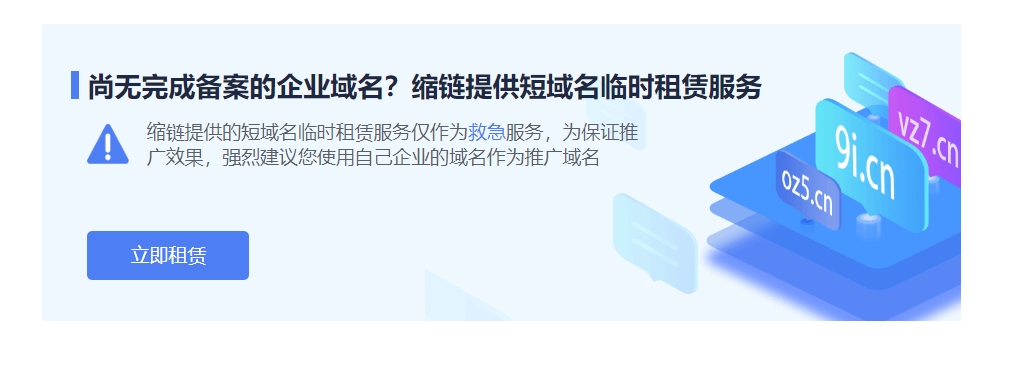 有些平台还会提供独享域名租赁服务(需要付费),不过一般仅作为救急使用,不建议长期使用,企业最好还是用自己的域名生成短链接更为稳定、安全,毕竟平台提供的独享域名是平台自己备案的(域名必须经过备案才能使用),当平台所属企业发生变动,域名也可能面临下线等问题,域名下线,您所生成的短链接自然也就打不开了。