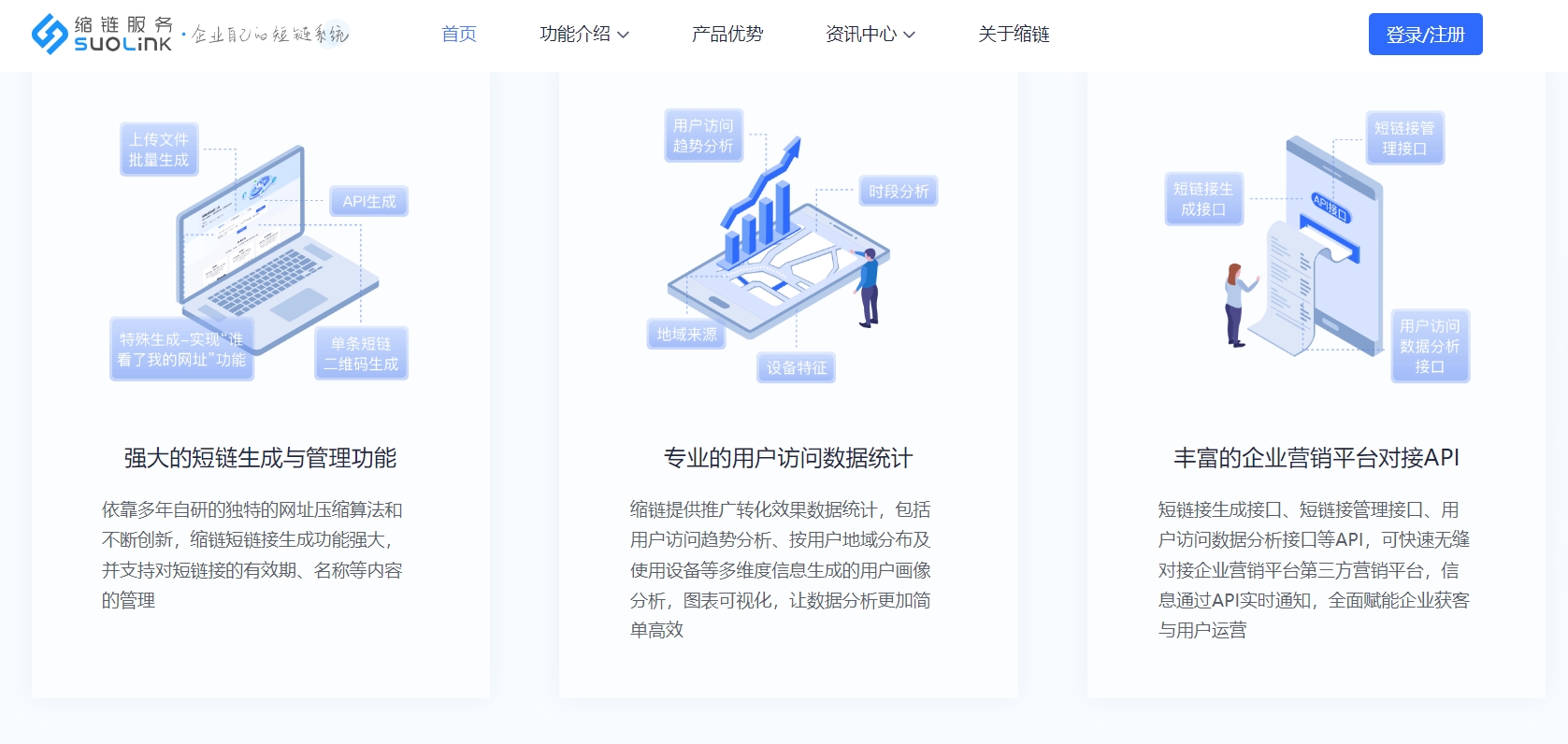 缩链短链接,向量大付费用户提供独享域名租赁服务,支持绑定企业短域名,支持与企业系统通过api无缝对接,支持企业定制服务,支持企业多账号登录与管理,可有效提升推广转化效果,降低营销推广成本与工具研发成本,简单易用,帮助企业提升运营工作效率。