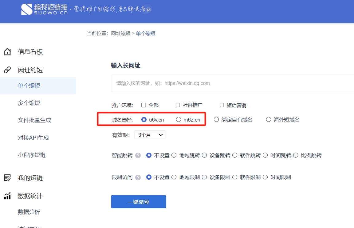 如果大家对自己域名绑定到第三方平台后的安全有所担心,那么可以选择短链接行业知名的一些服务平台,比如缩链,缩链从2013年开始提供短链接服务,目前是短链接行业top3的服务商,支持绑定企业自有域名生成短链接。大平台没必要做有损自己声誉和信誉,影响自己发展的事情。