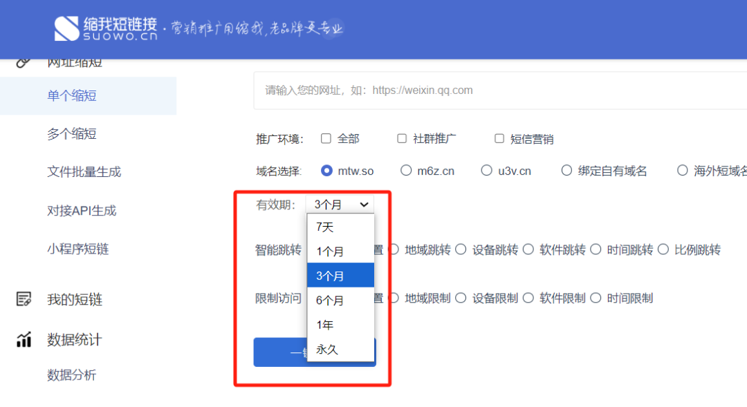 其实严格来说,并不完全是这样。短链接平台所谓的“永久有效”,指的是平台方会永久保留这个短链接,不会主动干预短链接有效期,比如有些平台为了降低服务器负担,短链接有效期只能选择7天、1个月,不会提供“永久有效”的选项。