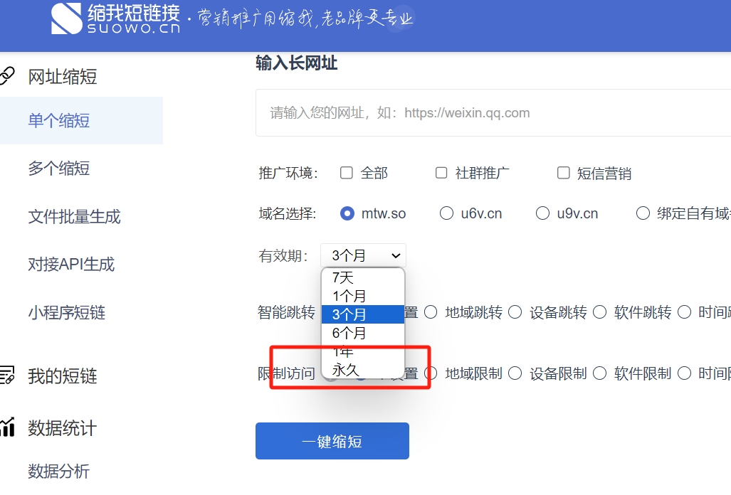 助力精准营销:缩我短链接的有效期设置可与其他功能配合,实现精准营销。例如,结合地域跳转、设备跳转等功能,根据不同地区、设备的用户特点,设置不同的有效期和推广内容,提高营销效果。还能通过设置访问密码,限定特定人群访问,保障内容私密性,进一步提升营销的精准度。