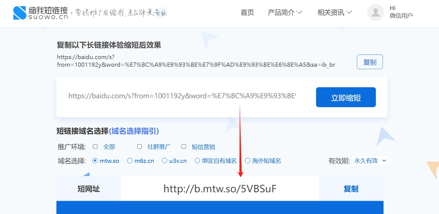 缩我短链接,支持长链接在线缩短,并自定义短链接有效期,可设置定期失效或永久有效,满足不同时效的推广需求。短链接生成后,你可以随时替换对应原链接,短链无需重新生成,点击原来的短链接,跳转链接将自动更新,帮你提升工作效率与推广效果。